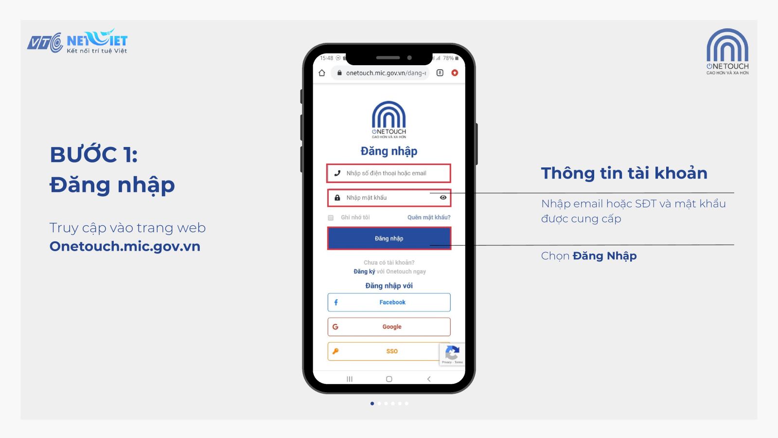 Tài liệu hướng dẫn cách đăng nhập và hoàn thành các bài học chuyển đổi số trên nền tảng trực tuyến Onetouch