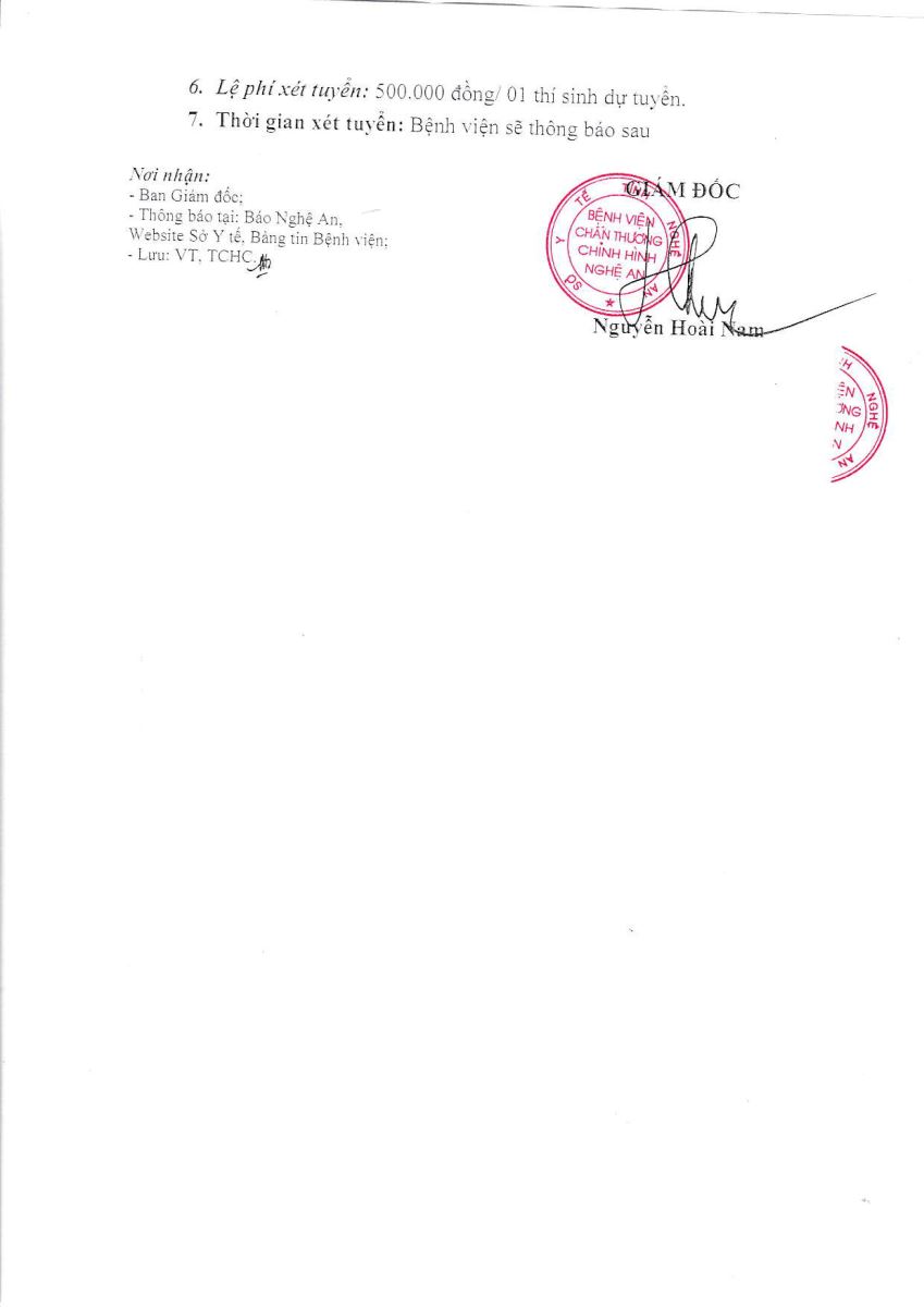 Thông báo kết quả xét tuyển viên chức làm việc tại Bệnh viện Chấn thương - Chỉnh hình Nghệ An